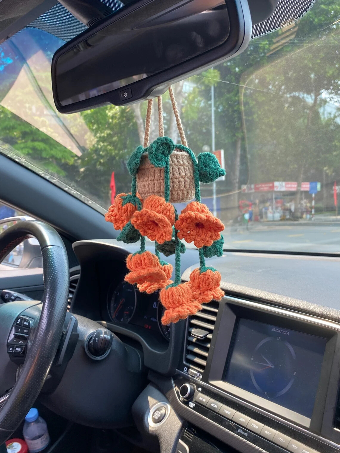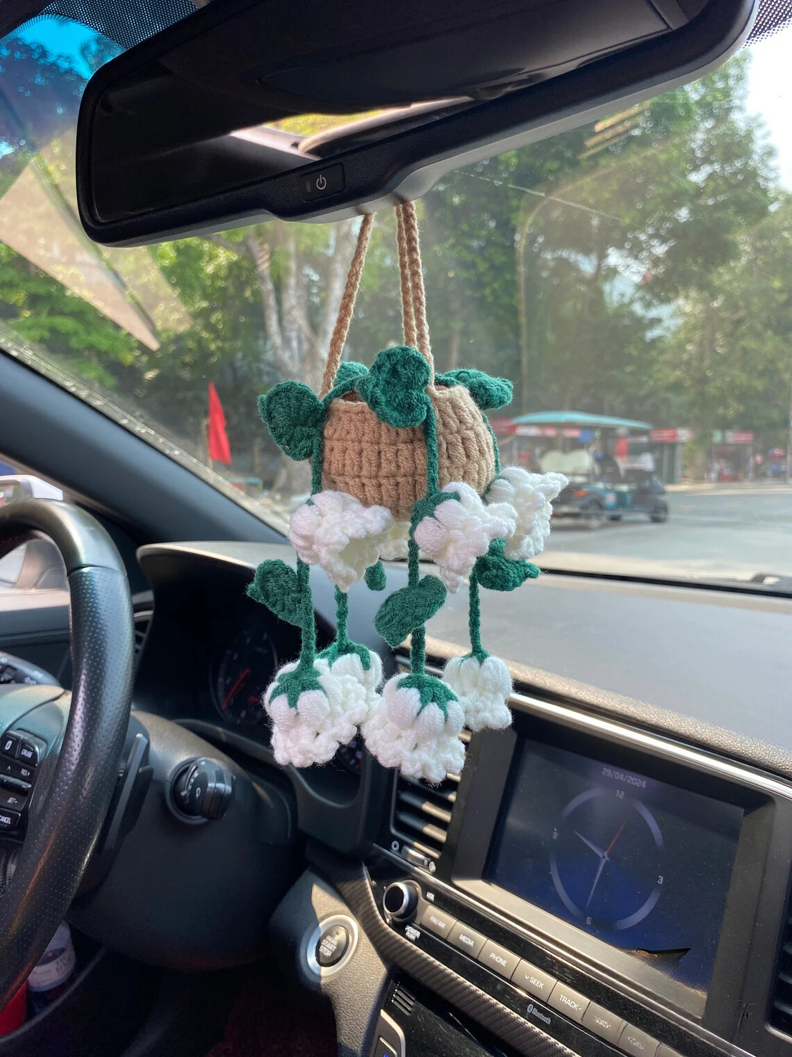 Crochet Lily Of The Valley Car Hanging, Crochet Succulent Plants Hanger, Car Mirror Decor, Car Accessories For Women, Car Mirror Ornament