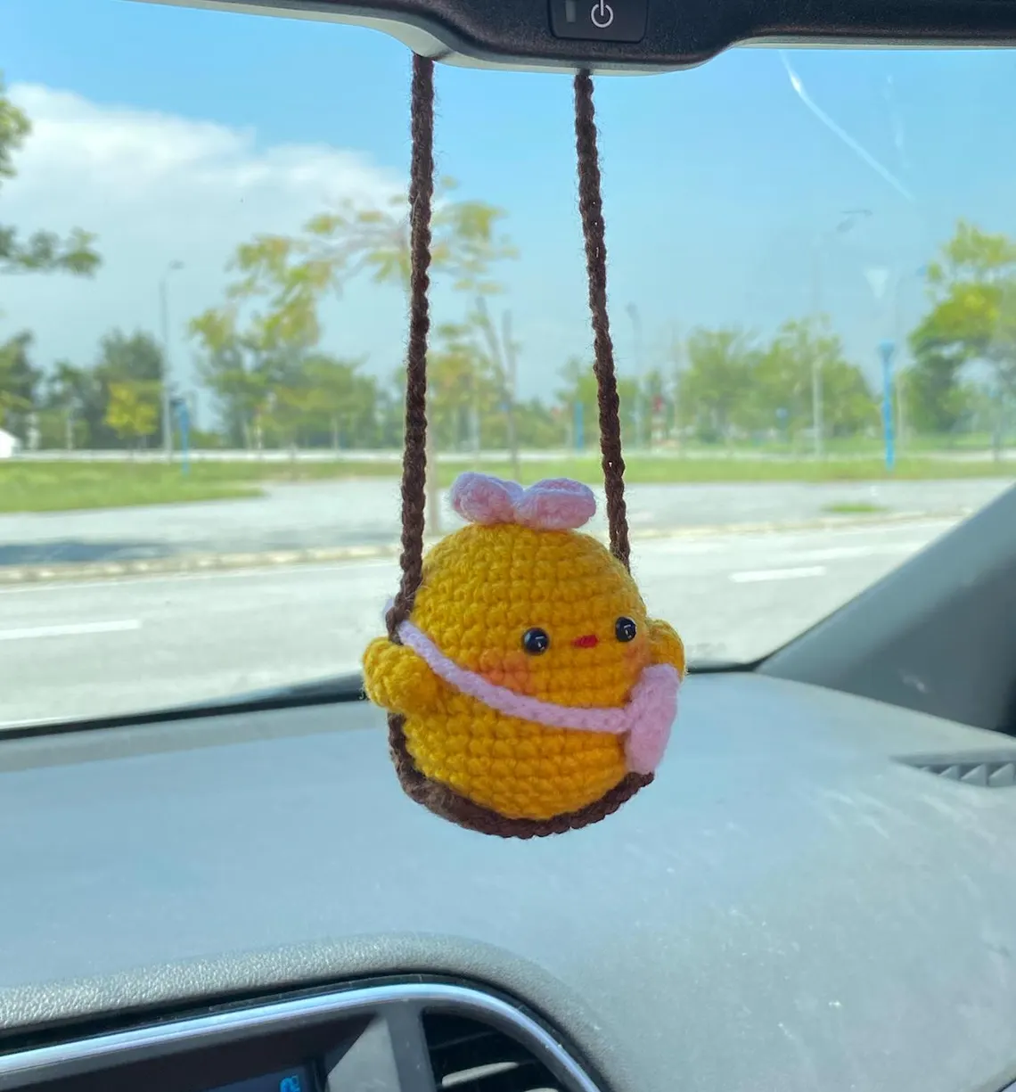 Cute Swinging Chick Car Mirror Hanging Accessories, Crochet Chicken Ornaments, New Car Gift Idea, Gift For Her, Car Decorations, Car Charm