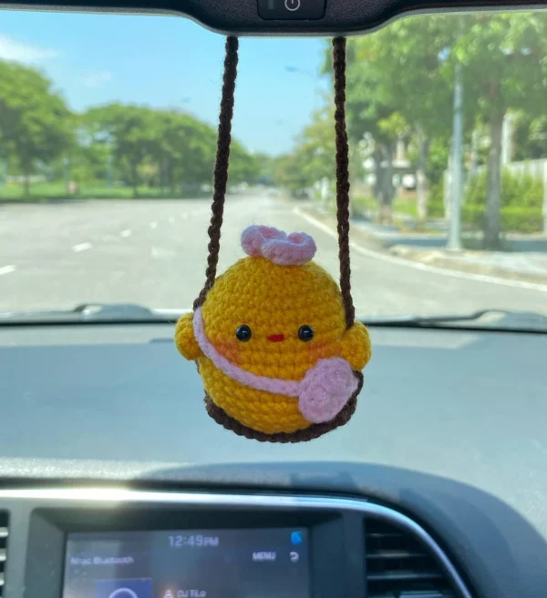 Cute Swinging Chick Car Mirror Hanging Accessories, Crochet Chicken Ornaments, New Car Gift Idea, Gift For Her, Car Decorations, Car Charm